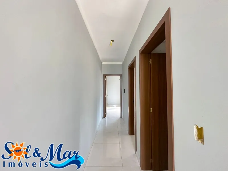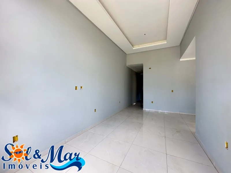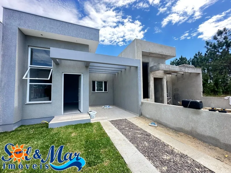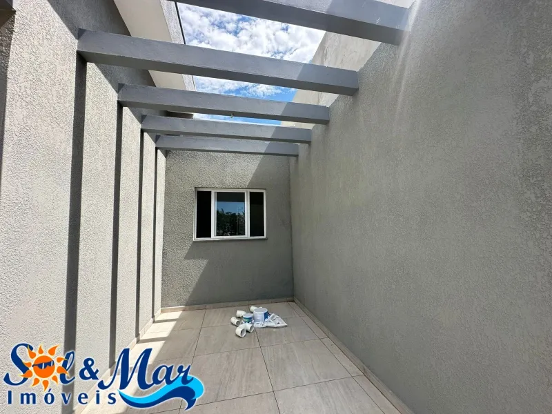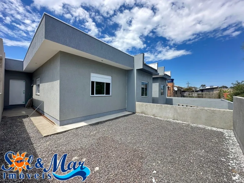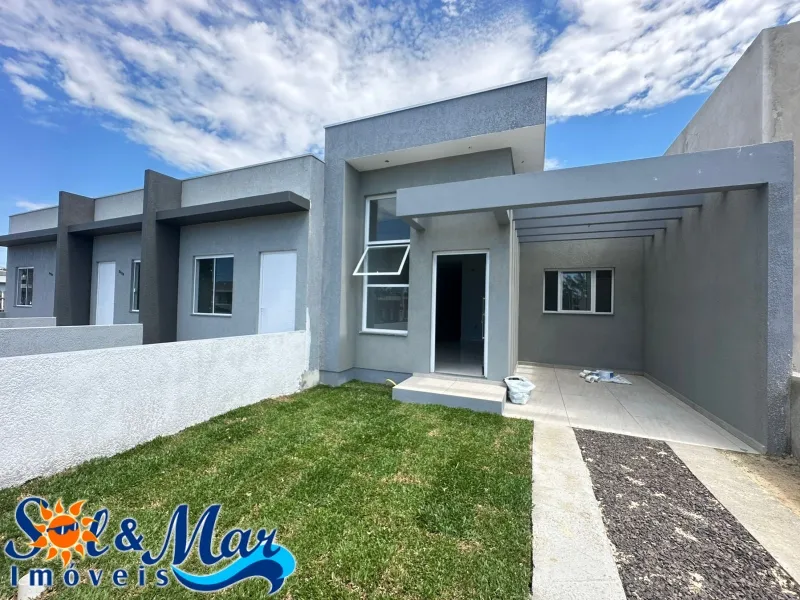 Geminada em alvenaria com: 02 dormitórios, 01 banheiro social, sala de estar e cozinha integradas, área de serviço, vaga para carro e pátio na frente e fundos.