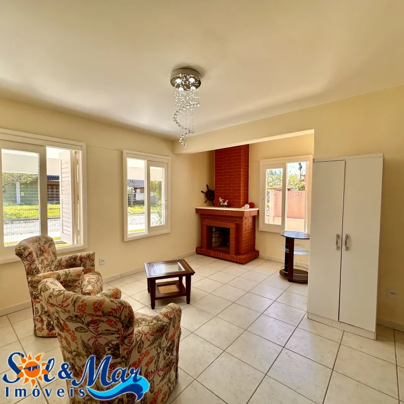 Sobrado em alvenaria com: 03 dormitórios (sendo 01 suíte com sacada), 01 banheiro social, 02 lavabos, sala de estar com lareira, sala de jantar, cozinha sob medida, despensa, garagem fechada para 02 carros com churrasqueira, área de serviço e pátio cercado.