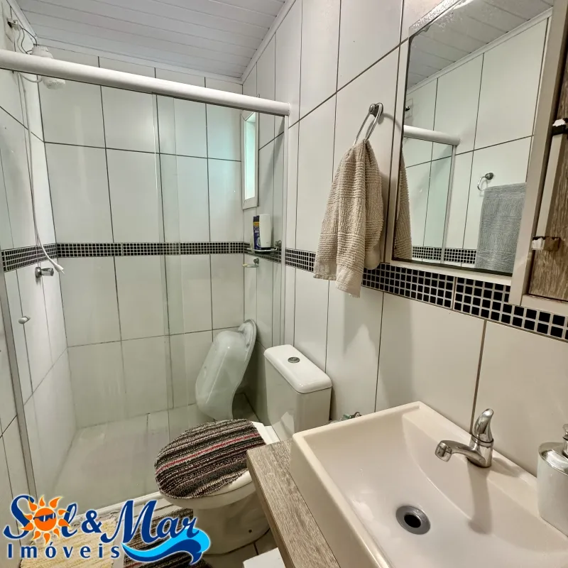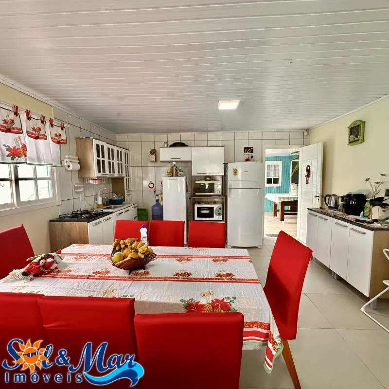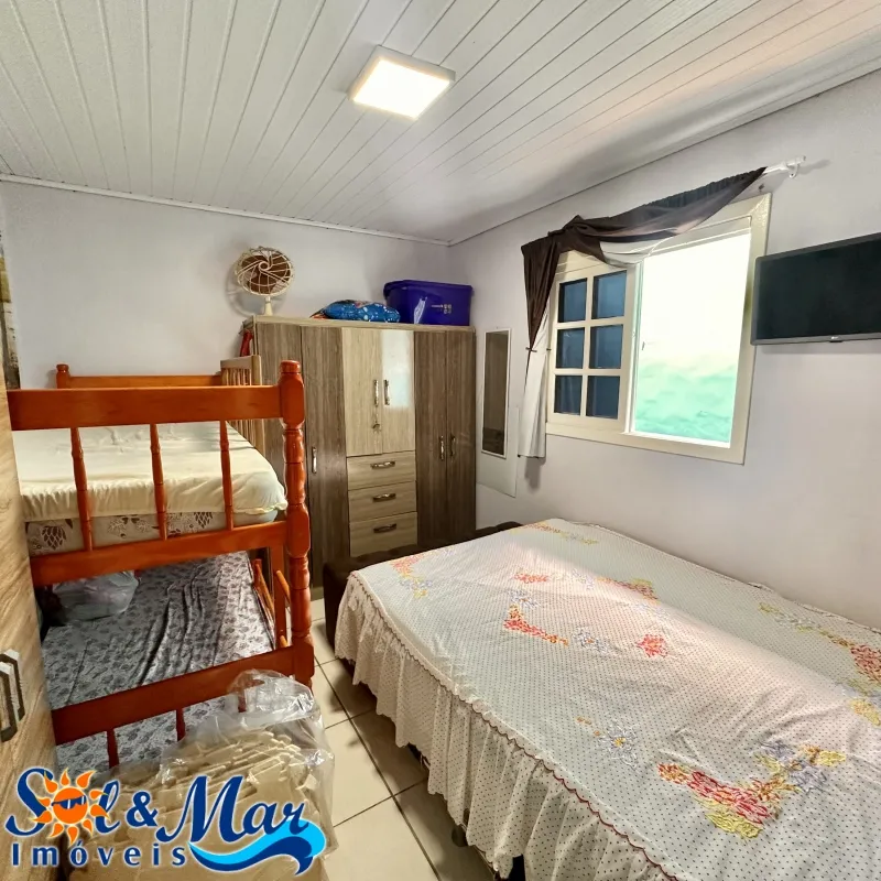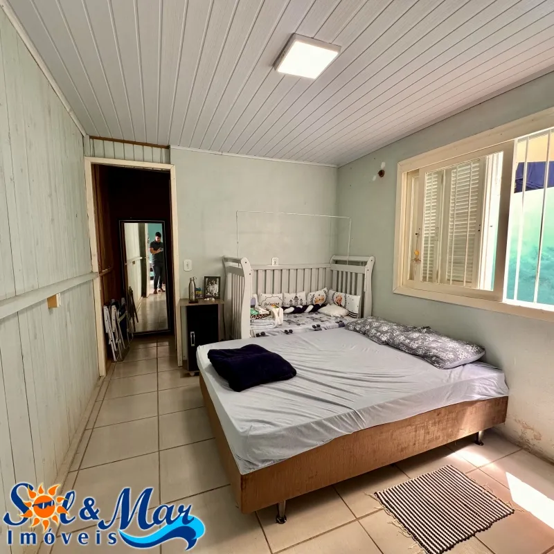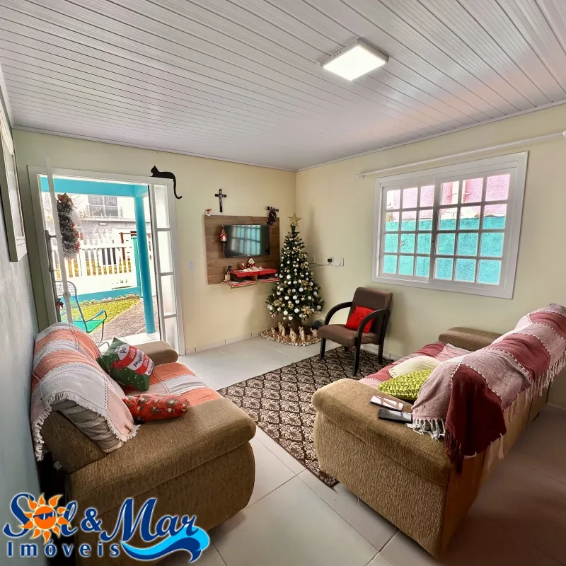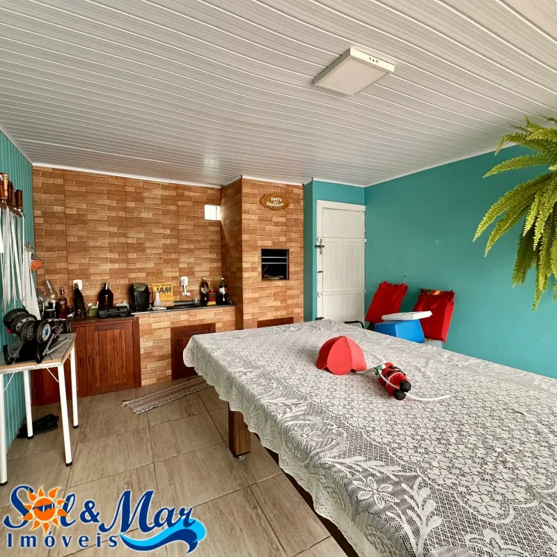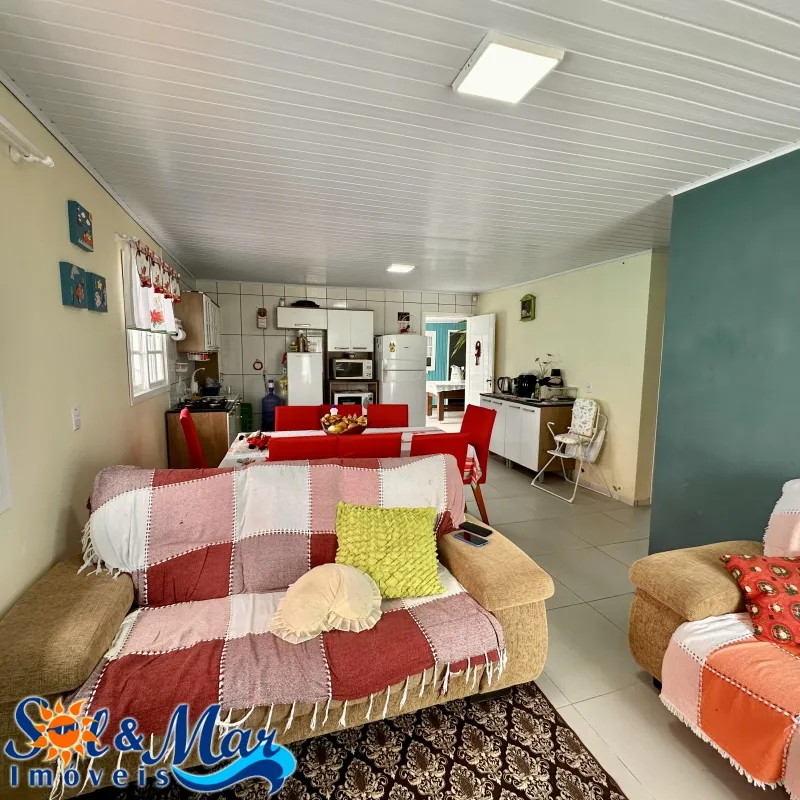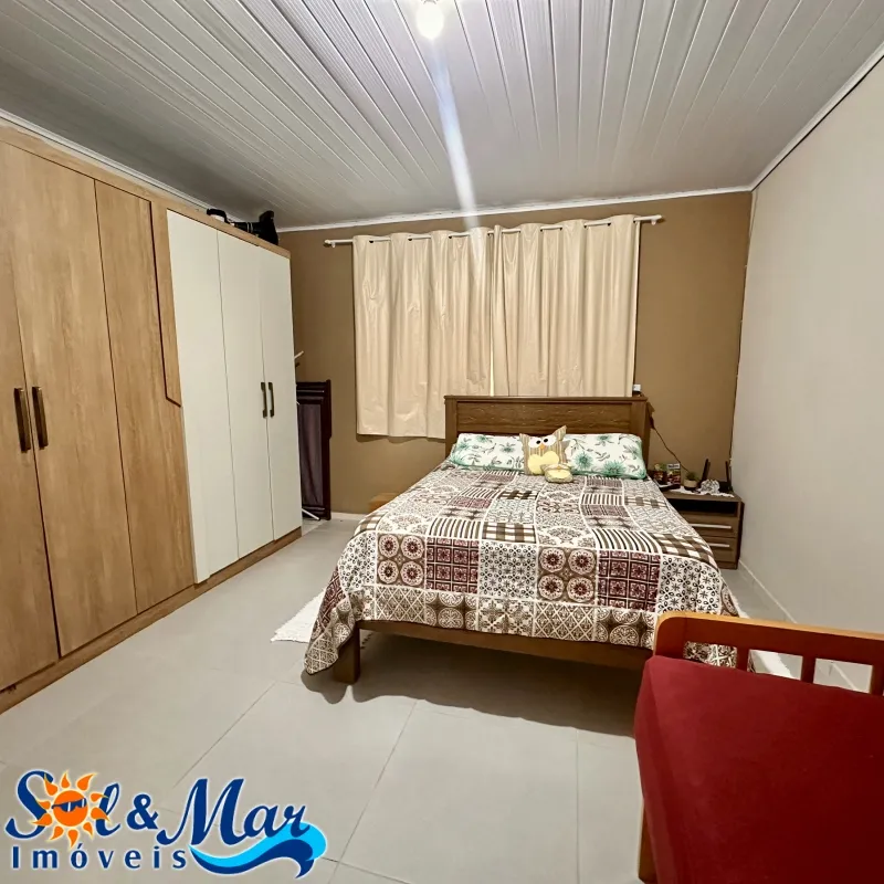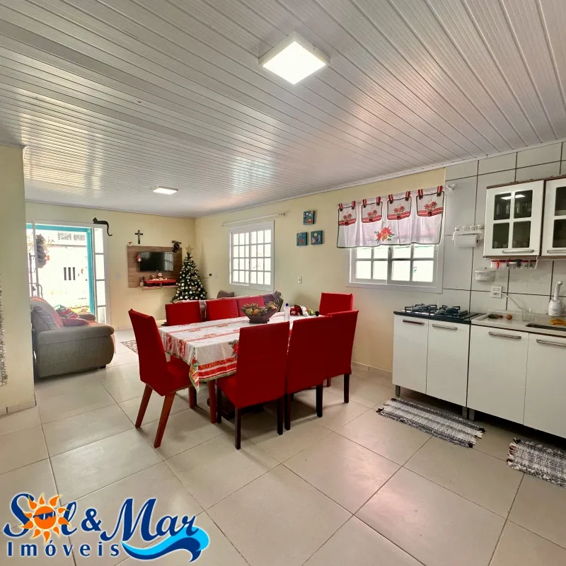 Residência em alvenaria com: 02 dormitórios (sendo 01 suíte), 01 banheiro social, sala de estar, jantar e cozinha integradas, área de serviço, área de lazer com churrasqueira, garagem fechada com 02 carros e pátio cercado. Anexo com: 01 suíte e despensa.