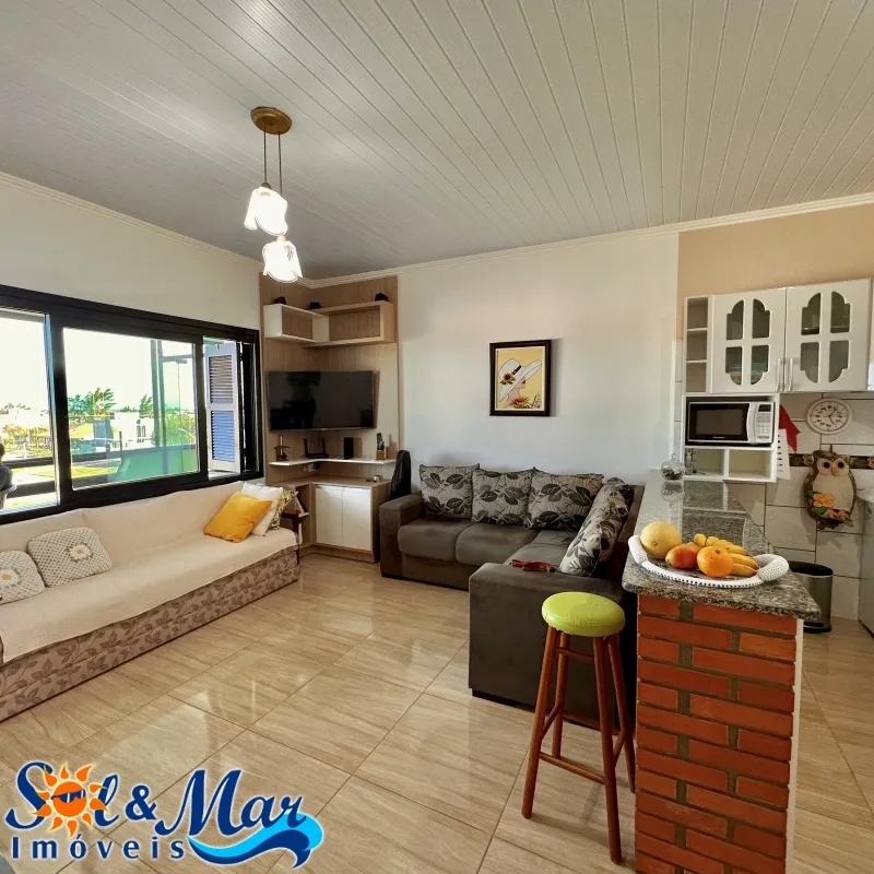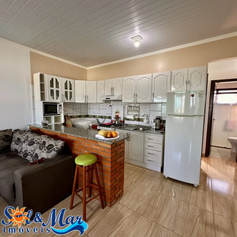 Apartamento com 01 dormitório, 01 banheiro social, sala de estar e cozinha integradas e sacada.