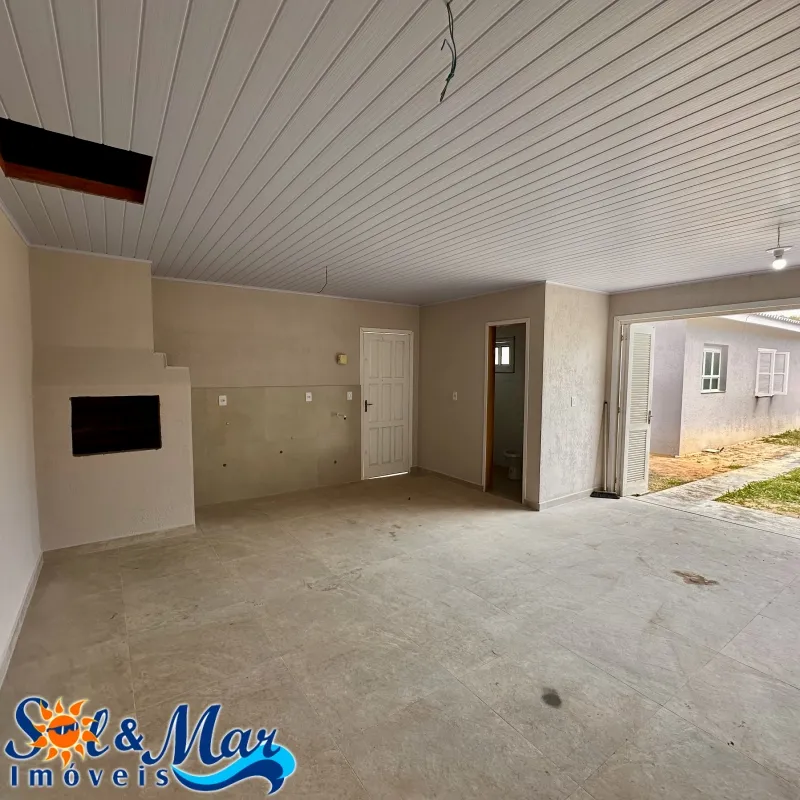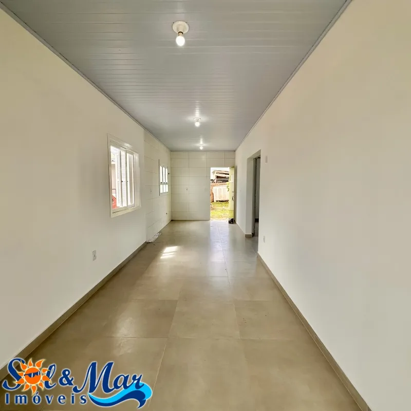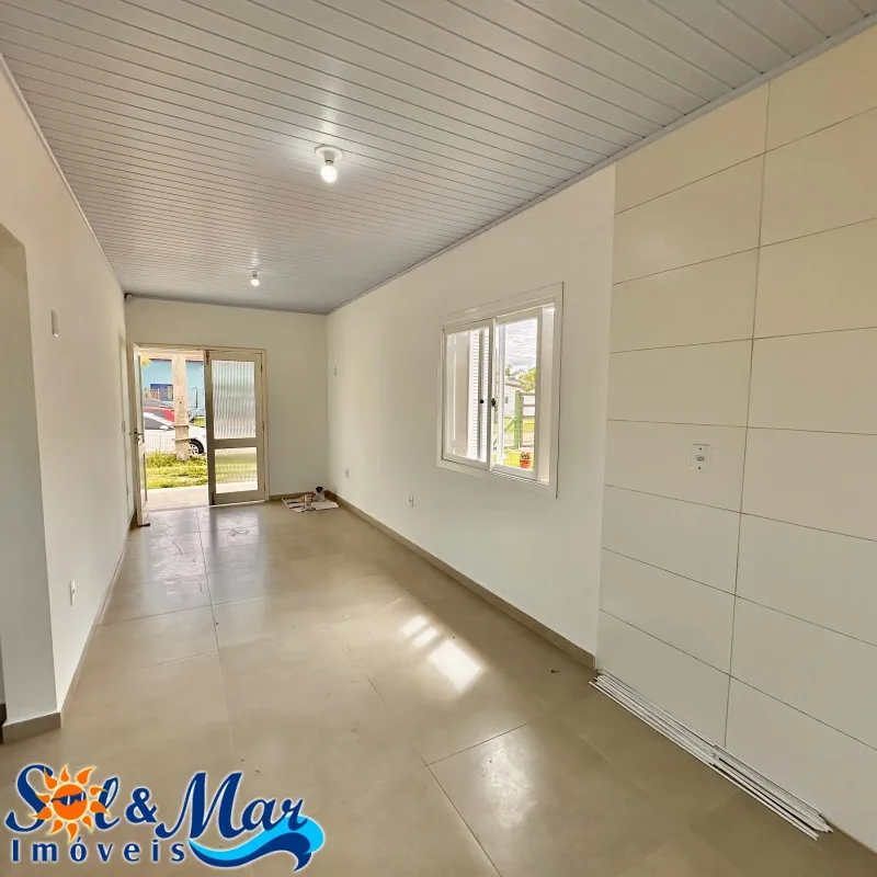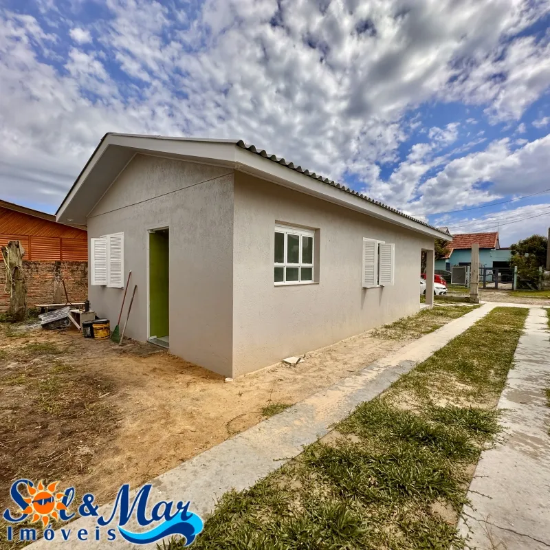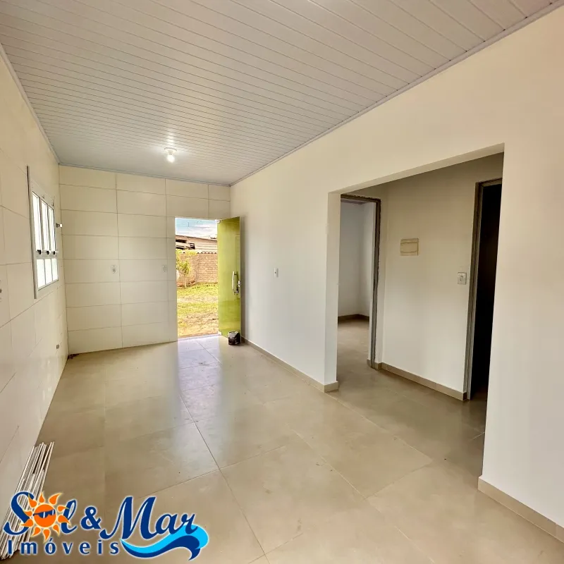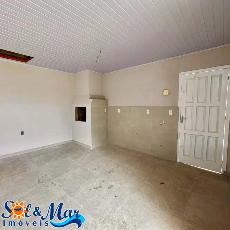Residência em alvenaria com: 02 dormitórios, 01 banheiro social, sala de estar e cozinha integradas, garagem fechada com churrasqueira e 01 banheiro social, pátio na frente e fundos cercado.