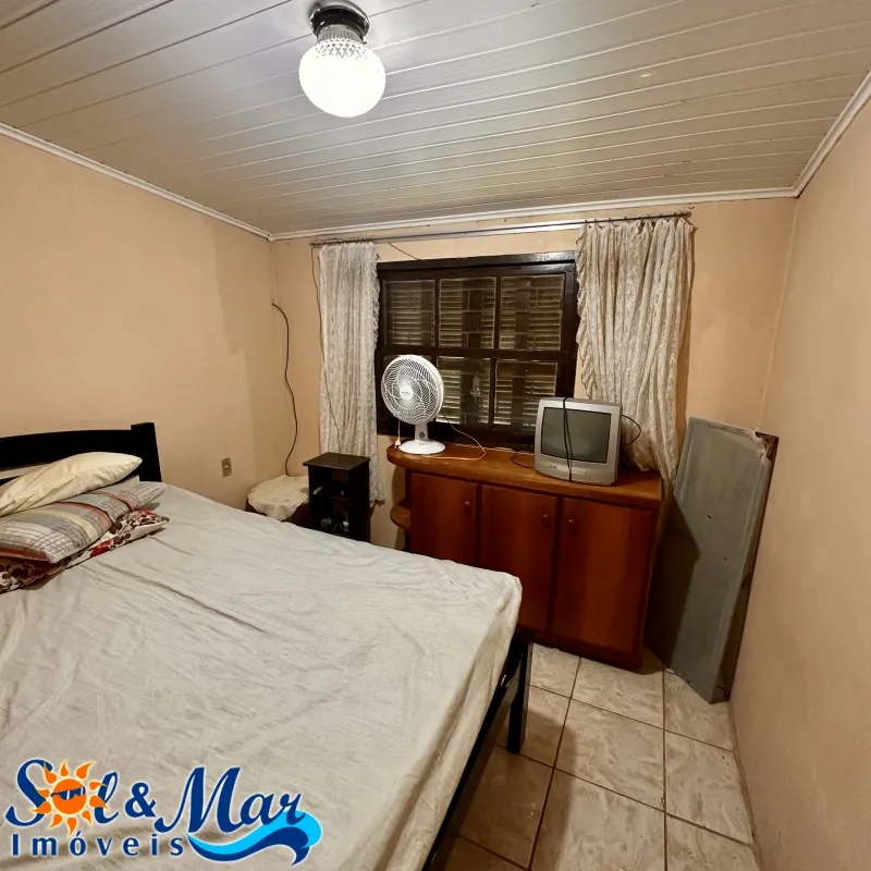 Residência em alvenaria com: 02 dormitórios, 02 banheiros sociais, sala de estar e cozinha integradas, área de lazer com churrasqueira e vaga para carro, pátio amplo na frente e cercado.