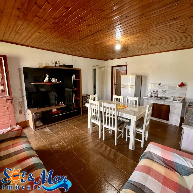 Residência em alvenaria com: 02 dormitórios sendo suíte, 02 salas de estar e cozinha integradas, área de serviço, garagem fechada para 02 carros, churrasqueira, pátio amplo e cercado.