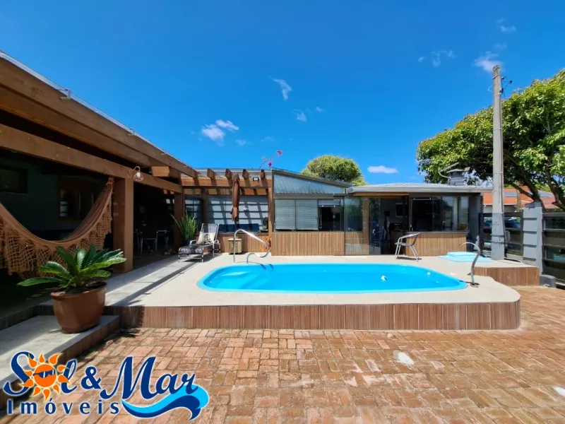 Residência em alvenaria com: 04 dormitórios (sendo 02 suítes), 01 banheiro social, 02 lavabos, ampla sala de estar, sala de jantar, cozinha sob medida, área gourmet interna com churrasqueira, lavanderia e pátio nos fundos. Quiosque com: área de lazer e gourmet com churrasqueira, piscina e pátio fechado.