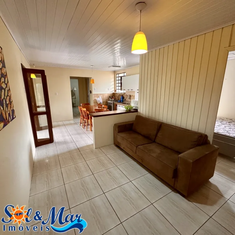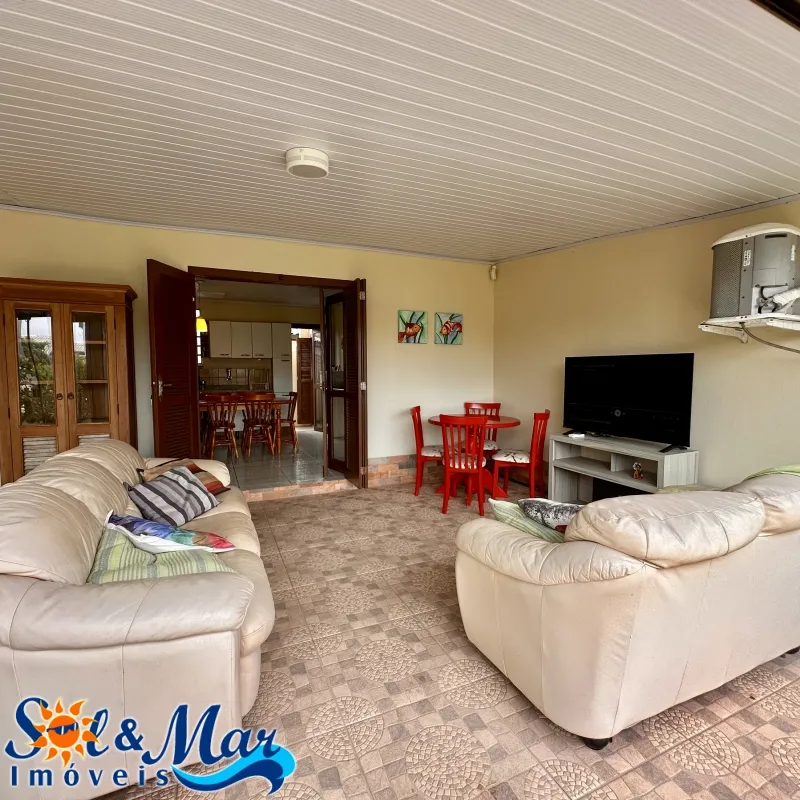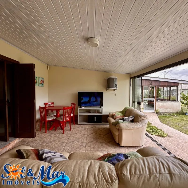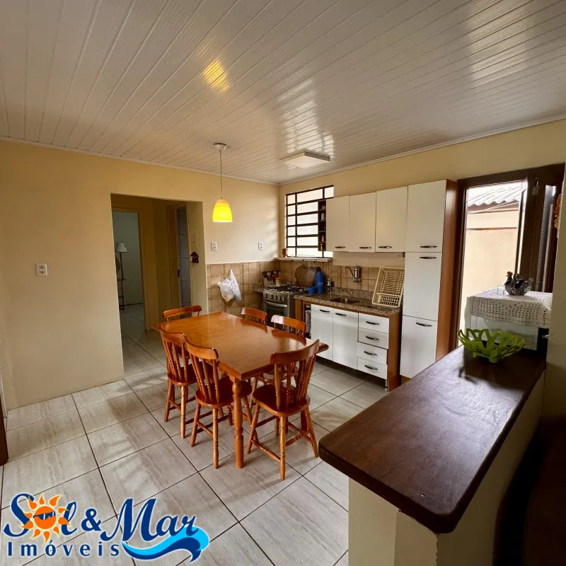 Residência em alvenaria com: 03 dormitórios, 02 banheiros sociais, sala de estar e cozinha integradas, despensa, ampla área de lazer com churrasqueira e pátio amplo cercado.