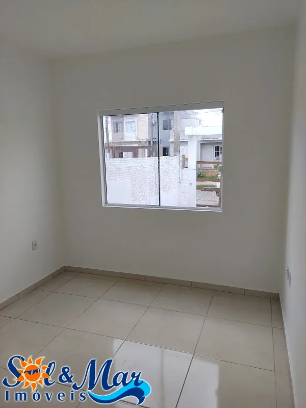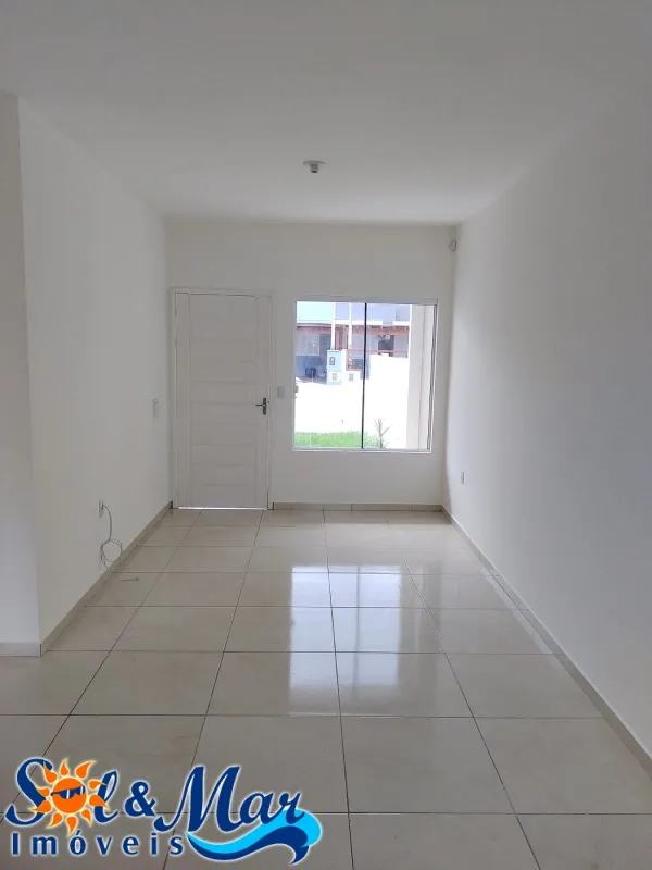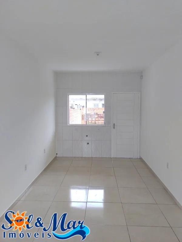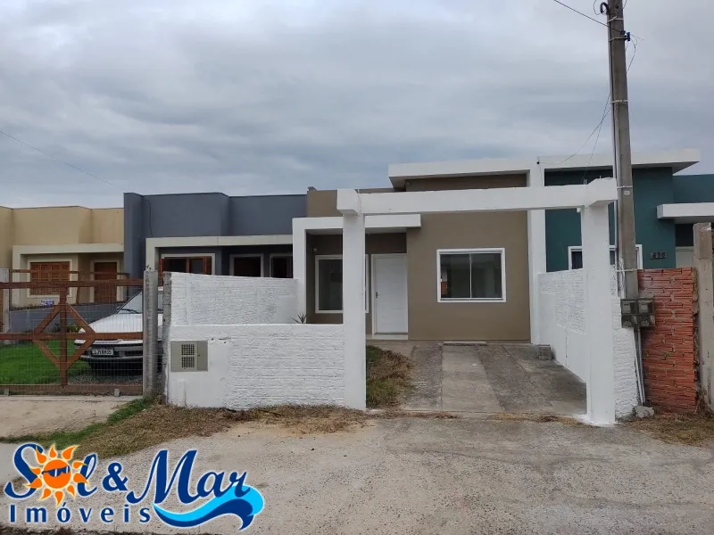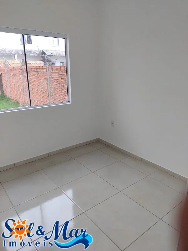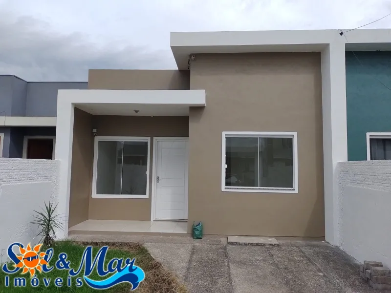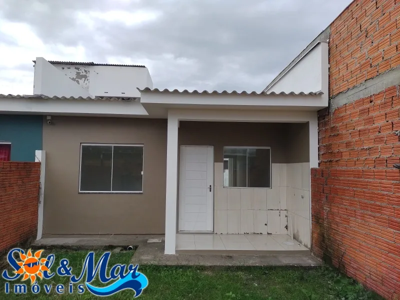 Geminada em alvenaria com: 02 dormitórios, 01 banheiro social, sala de estar e cozinha integradas, área de serviço, vaga para carro, pátio na frente e fundos.
