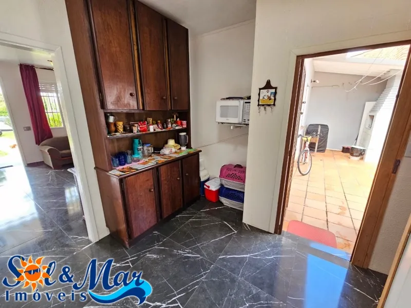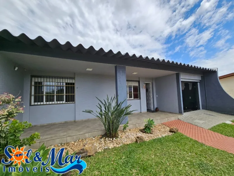 Residência em alvenaria com: 03 dormitórios, 02 banheiros sociais, sala de estar, cozinha e sala de jantar integradas, área de serviço, churrasqueira, pátio na frente e fundos cercado.