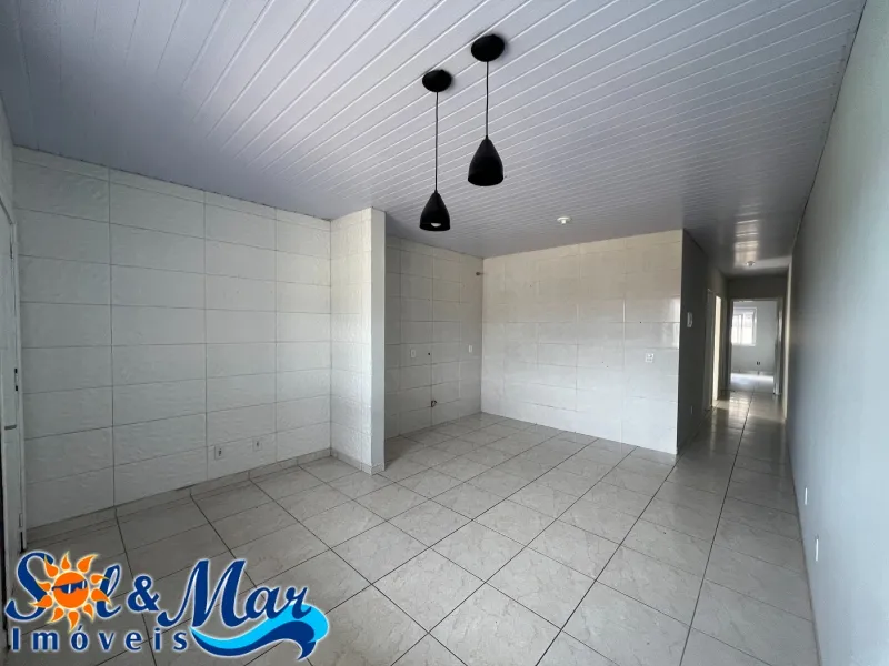 Geminada em alvenaria com: 02 dormitórios, 01 banheiro social, sala de estar e cozinha integradas, área de serviço, vaga para carro e pátio.