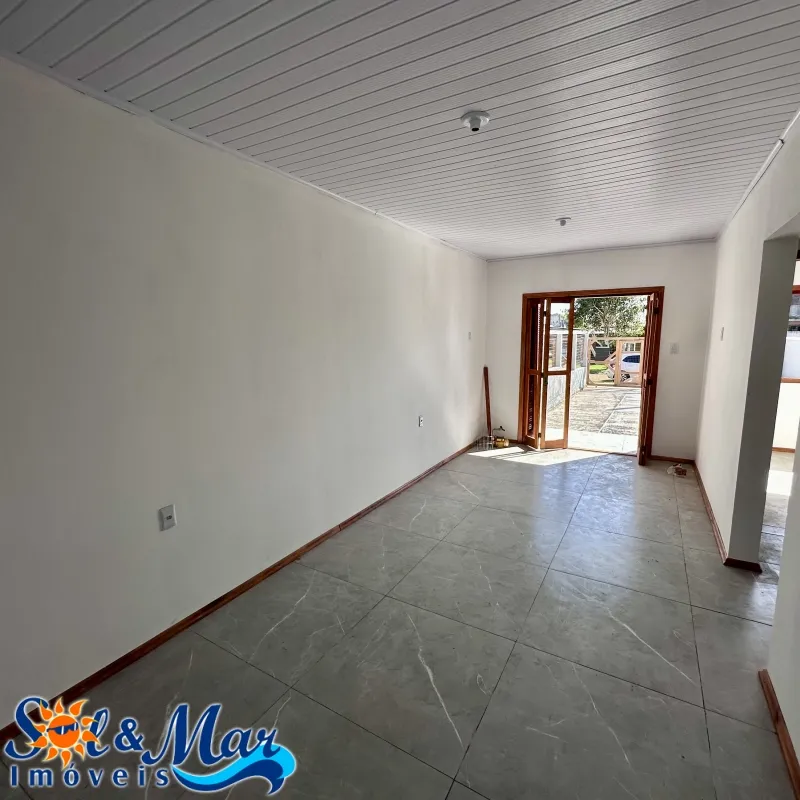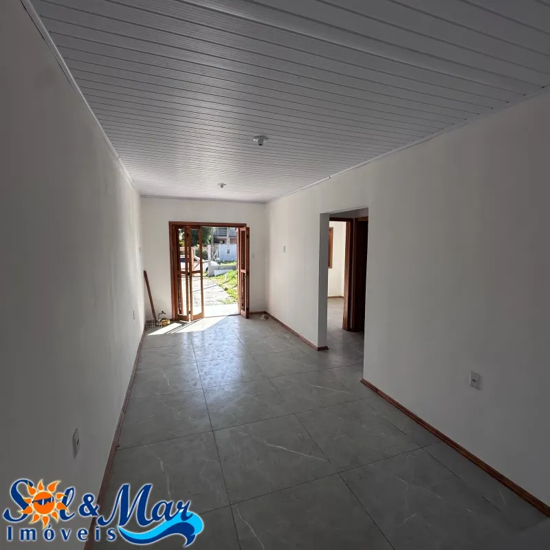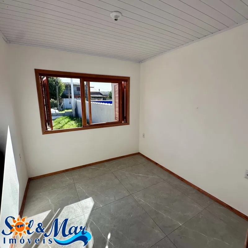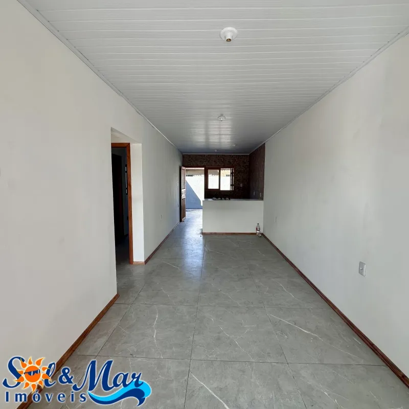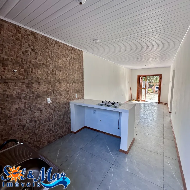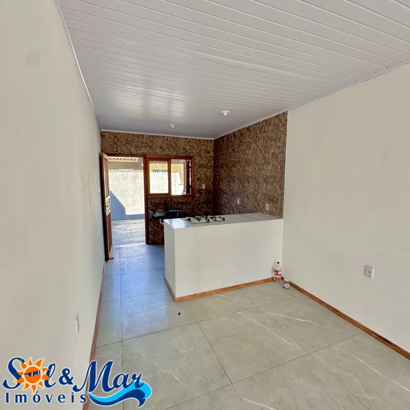 Geminada em alvenaria com: 02 dormitórios (sendo 01 suíte), 01 banheiro social, sala de estar e cozinha integradas, vaga para carro, pátio na frente e fundos cercado.